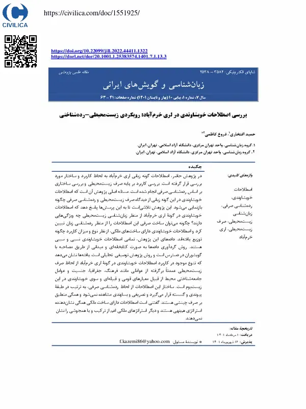 بررسی اصطلاحات خویشاوندی در لری خرم آباد: رویکردی زیست محیطی-رده شناختی