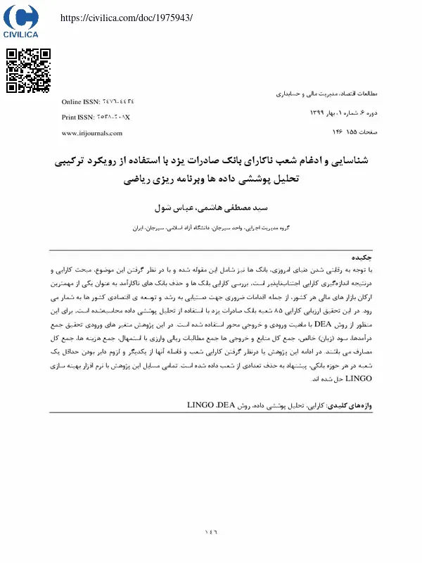 شناسایی و ادغام شعب ناکارای بانک صادرات یزد با استفاده از رویکرد ترکیبی تحلیل پوششی داده ها وبرنامه ریزی ریاضی