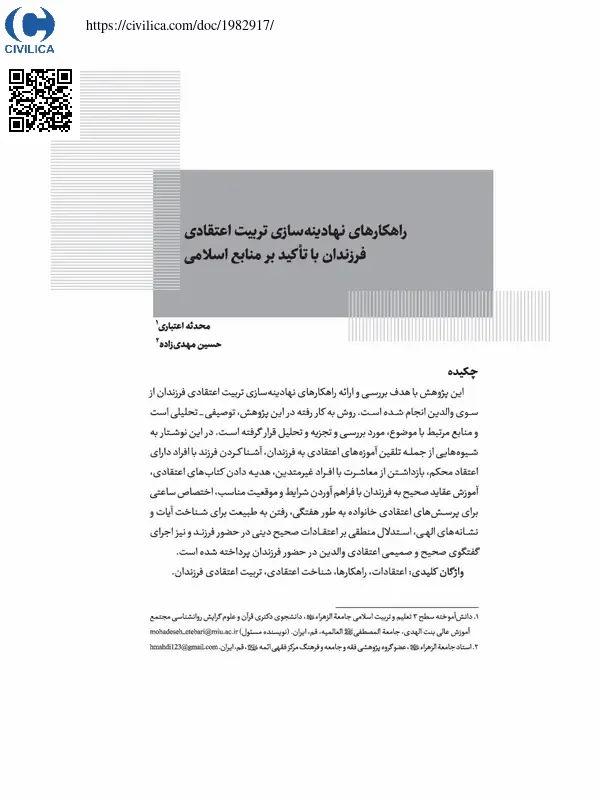 راهکارهای نهادینه سازی تربیت اعتقادی فرزندان با تاکید بر منابع اسلامی