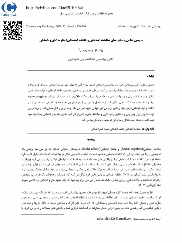 بررسی تعامل و تمایز میان شناخت اجتماعی و عاطفه اجتماعی: نظریه ذهن و همدلی