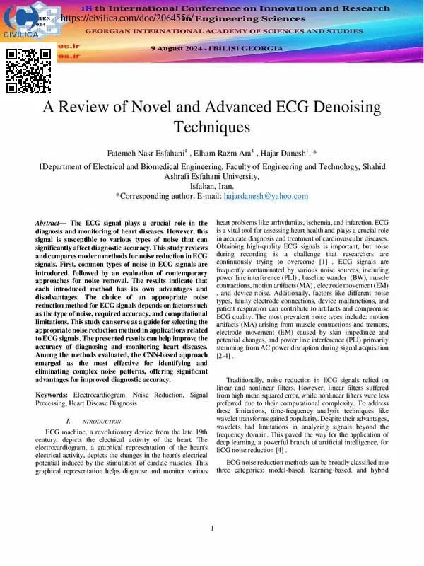The ECG signal plays a crucial role in the diagnosis and monitoring of heart diseases. However, this signal is susceptible to various types of noise that can significantly affect diagnostic accuracy. This study reviews and compares modern methods for noise reduction in ECG signals. First, common types of noise in ECG signals are introduced, followed by an evaluation of contemporary approaches for noise removal. The results indicate that each introduced method has its own advantages and disadvantages. The choice of an appropriate noise reduction method for ECG signals depends on factors such as the type of noise, required accuracy, and computational limitations. This study can serve as a guide for selecting the appropriate noise reduction method in applications related to ECG signals. The presented results can help improve the accuracy of diagnosing and monitoring heart diseases. Among the methods evaluated, the CNN-based approach emerged as the most effective for identifying and eliminating complex noise patterns, offering significant advantages for improved diagnostic accuracy