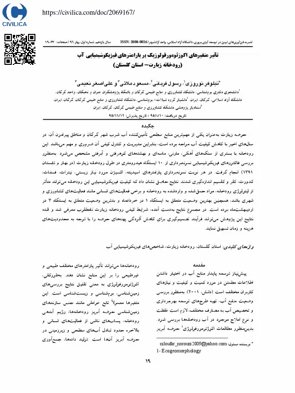 تاثیر متغیرهای اکوژئومورفولوژیک بر پارامترهای فیزیکوشیمیایی آب (رودخانه زیارت- استان گلستان)