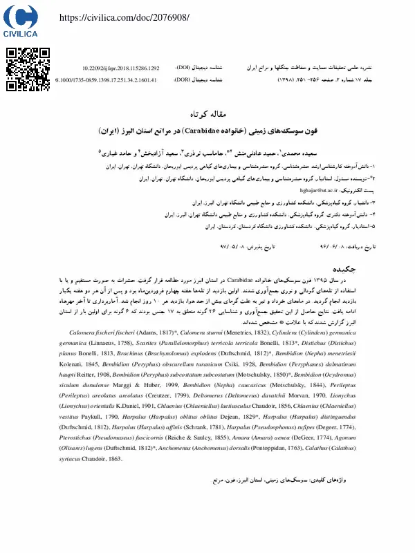 فون سوسک های زمینی (خانوادهCarabidae ) در مراتع استان البرز (ایران)