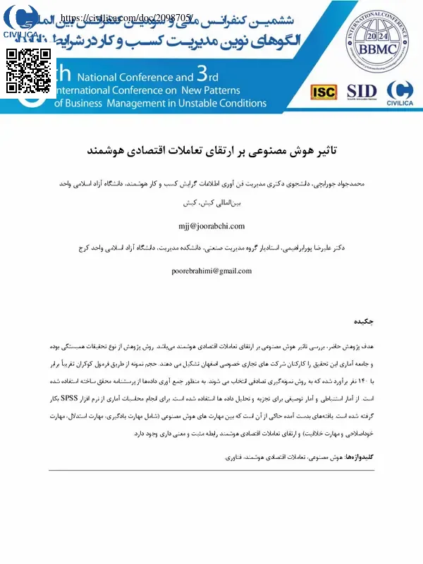 محل انتشار: ششمین کنفرانس ملی و سومین کنفرانس بین المللی الگوهای نوین مدیریت کسب و کار در شرایط ناپایدار