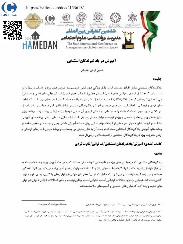 یادگیرندگان استثنایی شامل افرادی هستند که به دلیل ویژگی های خاص خود،نیازمند آموزش های ویژه و خدمات مرتبط با آن هستند.این گروه شامل افرادی با توانایی های خاص(مانند تیز هوشی ) یا چالش های خاص(مانند کم توانی های ذهنی و جسمانی ) می شود.آموزش به این گروه از یادگیرندگان،نیازمند استفاده از روش های خلاقانه و هماهنگ در کلاس های درس است که تفاوت های فردی و فرهنگی را لحاظ کند. روند های جدید در آموزش یادگیرندگان استثنایی شامل تلفیق این افراد با سایر دانش آموزان در کلاس های عمومی است ،که باعث رشد اجتماعی و کاهش انزوای آن ها می شود.با این حال،این روند نیازمند برنامه ریزی دقیق ،همکاری بین معلمان عمومی و ویژه،و توجه به عوامل محیطی و روانی است .آماده سازی معلمان،طراحی برنامه های آموزشی متناسب ،و ایجاد فضای حمایتی در کلاس از الزامات موفقیت این روش هستند.آموزش عاطفی یکی از جنبه های مغفول مانده در برنامه های آموزشی یادگیرندگان استثنایی است که توجه به آن به نتایج مثبتی می رسد.انطباق برنامه درسی با نیاز های فرهنگی و زبانی متنوع،به ویژه در یادگیرندگان استثنایی از اهمیت بالایی برخوردار است .