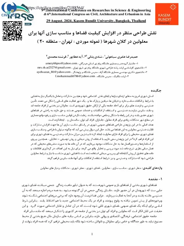 نقش طراحی منظر در افزایش کیفیت فضاها و مناسب سازی آنها برای معلولین در کالن شهرها ( نمونه موردی : تهران- منطقه ۲۰ )