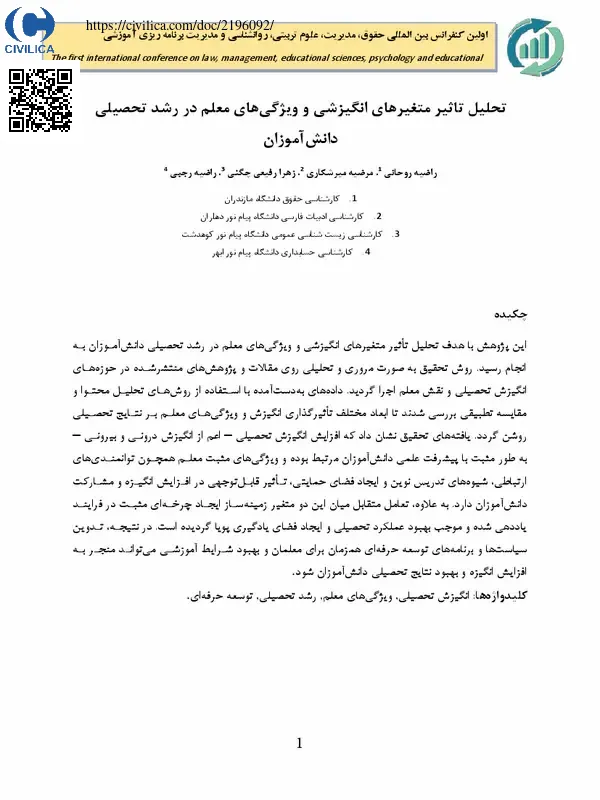 این پژوهش با هدف تحلیل تاثیر متغیرهای انگیزشی و ویژگی های معلم در رشد تحصیلی دانش آموزان به انجام رسید. روش تحقیق به صورت مروری و تحلیلی روی مقالات و پژوهش های منتشرشده در حوزه های انگیزش تحصیلی و نقش معلم اجرا گردید. داده های به دست آمده با استفاده از روش های تحلیل محتوا و مقایسه تطبیقی بررسی شدند تا ابعاد مختلف تاثیرگذاری انگیزش و ویژگی های معلم بر نتایج تحصیلی روشن گردد. یافته های تحقیق نشان داد که افزایش انگیزش تحصیلی – اعم از انگیزش درونی و بیرونی – به طور مثبت با پیشرفت علمی دانش آموزان مرتبط بوده و ویژگی های مثبت معلم همچون توانمندی های ارتباطی، شیوه های تدریس نوین و ایجاد فضای حمایتی، تاثیر قابل توجهی در افزایش انگیزه و مشارکت دانش آموزان دارد. به علاوه، تعامل متقابل میان این دو متغیر زمینه ساز ایجاد چرخه ای مثبت در فرایند یاددهی شده و موجب بهبود عملکرد تحصیلی و ایجاد فضای یادگیری پویا گردیده است. در نتیجه، تدوین سیاست ها و برنامه های توسعه حرفه ای همزمان برای معلمان و بهبود شرایط آموزشی می تواند منجر به افزایش انگیزه و بهبود نتایج تحصیلی دانش آموزان شود.