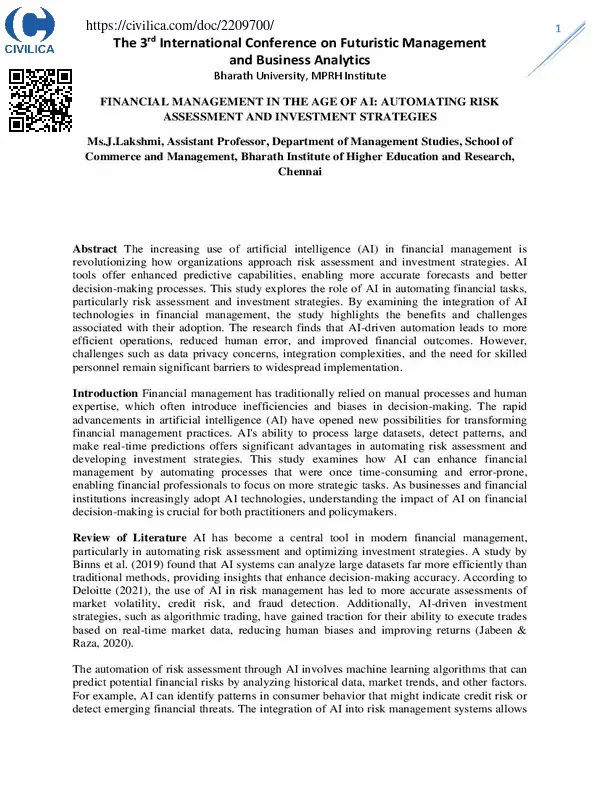 FINANCIAL MANAGEMENT IN THE AGE OF AI: AUTOMATING RISK ASSESSMENT AND INVESTMENT STRATEGIES