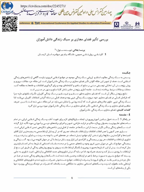 سبک زندگی به سبک مطلوب اسلام و ارزیابی سبک زندگی موجود در جوامع اسلامی امروزی نیازمند شاخص های زندگی اسلامی است. هدف از تدوین مقاله کاوش تاثیر فضای مجازی بر سبک زندگی دانش آموزان است. مقاله جزء مقالات مروری و توصیفی است. در این راستا، از منابع کتابخانه ای و برخی کاوش های اینترنتی استفاده شده است. محور روش، بررسی مقالات مرتبط با پرداختن به مسئله سبک زندگی و فضای مجازی است. نتایج پژوهش بیانگر آن است که فضای مجازی به طور مستقیم و غیرمستقیم بر سبک زندگی کاربران در دسترس تاثیرات بغرنجی دارد. طراحان فضای مجازی در خود سبک زندگی عربی است که سبک زندگی عمیق حاوی چالش های عمیقی است که آینده روشنی (نمایان نمی سازد). هدف اصلی این مقاله نیز شناخت کاربران است. لذا سعی شده است تعریف مفاهیم فضای مجازی و سبک زندگی اسلامی تبیین گردد.