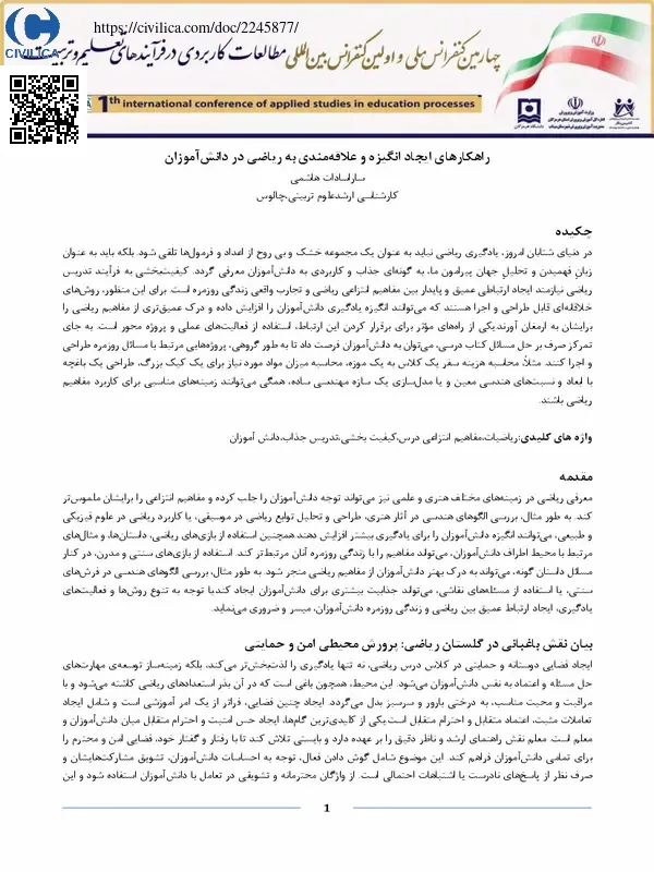 در دنیای شتابان امروز، یادگیری ریاضی نبای د به عنوان یک مجموعه خشک و ب ی روح از اعداد و فرمولها تلقی شود. بلکه باید به عنوان زبان فهمیدن و تحلیل جهان پ یرامون ما، به گونهای جذاب و کاربردی به دانش آموزان معرف ی گردد. کیفیتبخشی به فرآیند تدریس ریاضی نیازمند ایجاد ارتباطی عمی ق و پایدار بین مفاهیم انتزاع ی ریاضی و تجارب واقع ی زندگی روزمره است. برای این منظور، روشهای خلاقانهای قابل طراحی و اجرا هستند که میتوانند انگیزه یادگیری دانش آموزان را افزا یش داده و درک عمیقتری از مفاهیم ری اضی را برایشان به ارمغان آورند.یکی از راههای موثر برای برقرار کردن این ارتباط، استفاده از فعالیتهای عملی و پروژه محور است. به جای تمرکز صرف بر حل مسائل کتاب درسی، م یتوان به دانش آموزان فرصت داد تا به طور گروه ی، پروژهها یی مرتبط با مسائل روزمره طراحی و اجرا کنند. مثال، محاسبه هزینه سفر یک کلاس به یک موزه، محاسبه میزان مواد مورد نیاز برای ی ک کیک بزرگ، طراحی یک باغچه با ابعاد و نسبتهای هندسی معی ن و ی ا مدلسازی یک سازه مهندسی ساده، همگی م یتوانند زمینه های مناسبی برای کاربرد مفاهیم ریاضی باشند.