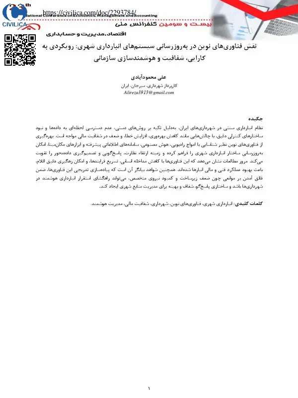 نقش فناوری های نوین در به روزرسانی سیستم های انبارداری شهری: رویکردی به کارایی، شفافیت و هوشمندسازی سازمانی