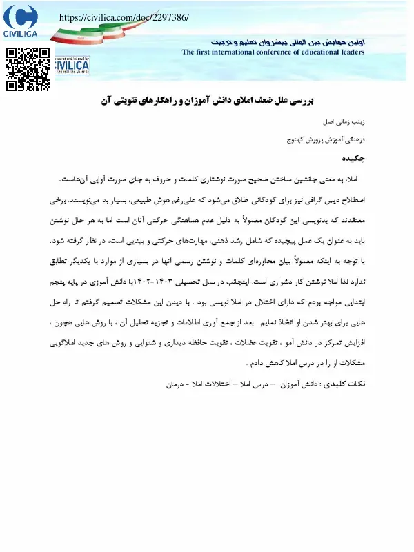 بررسی علل ضعف املای دانش آموزان و راهکارهای تقویتی آن