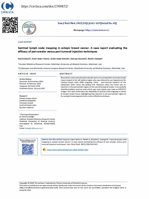 Sentinel lymph node mapping in ectopic breast cancer: A case report evaluating the efficacy of peri-areolar versus peri-tumoral injection techniques