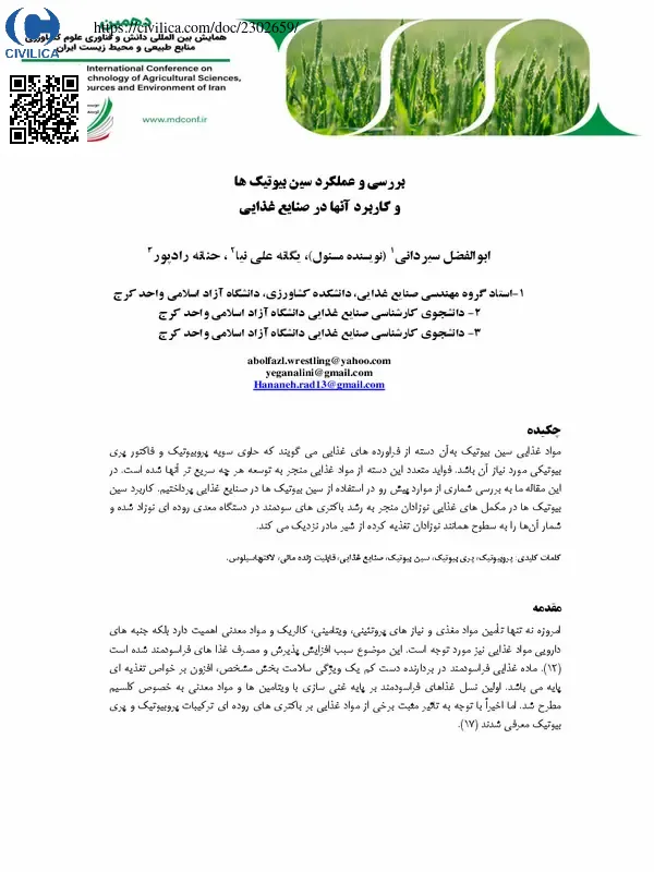 بررسی و عملکرد سین بیوتیک ها و کاربرد آنها در صنایع غذایی