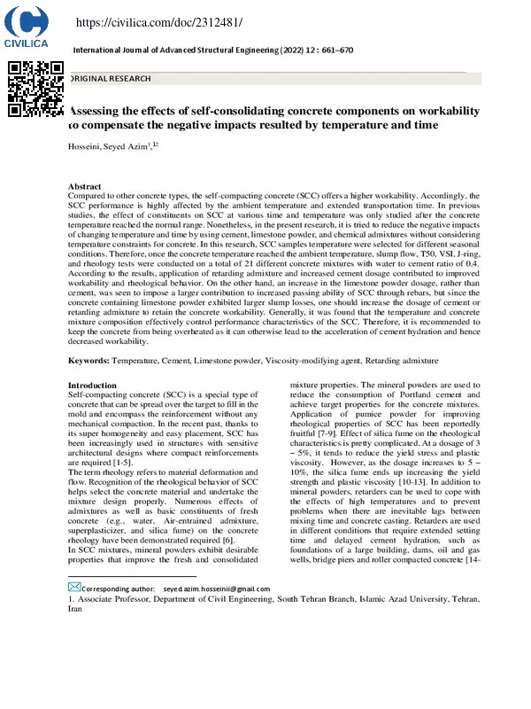Assessing the effects of self-consolidating concrete components on workability to compensate the negative impacts resulted by temperature and time