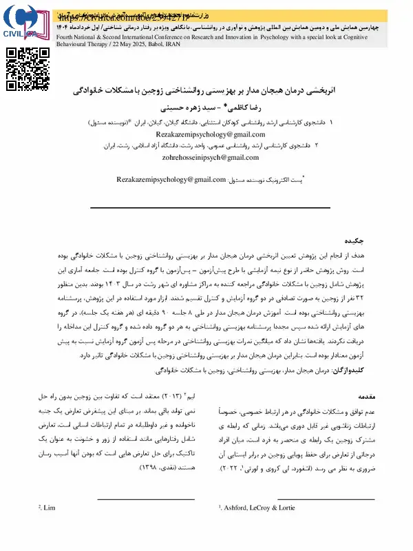 اثربخشی درمان هیجان مدار بر بهزیستی روانشناختی زوجین با مشکلات خانوادگی