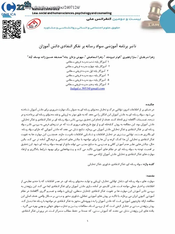 تاثیر برنامه آموزشی سواد رسانه بر تفکر انتقادی دانش آموزان