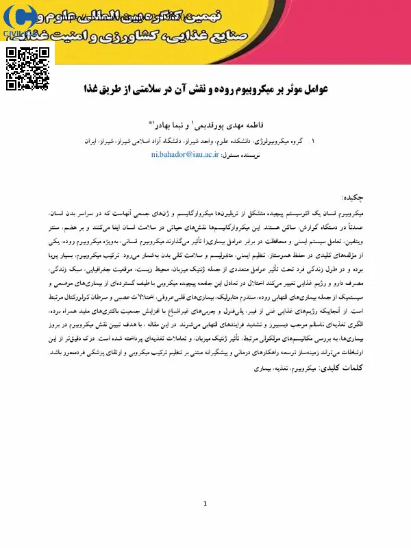 میکروبیوم انسان یک اکوسیستم پیچیده متشکل از تریلیونها میکروارگانیسم و ژنهای جمعی آنهاست که در سراسر بدن انسان، عمدتا در دستگاه گوارش ساکن هستند. این میکروارگانیسمها نقشهای حیاتی در سلامت انسان ایفا میکنند و بر هضم، سنتز ویتامین، تعامل سیستم ایمنی و محافظت در برابر عوامل بیماریزا تاثیر میگذارند. میکروبیوم انسانی به ویژه میکروبیوم روده، یکی از مولفه های کلیدی در حفظ هموستاز تنظیم ایمنی متابولیسم و سلامت کلی بدن به شمار میرود. ترکیب میکروبیوم، بسیار پویا بوده و در طول زندگی فرد تحت تاثیر عوامل متعددی از جمله ژنتیک، میزبان محیط زیست موقعیت جغرافیایی، سبک زندگی، مصرف دارو و رژیم غذایی تغییر میکند. اختلال در تعادل این جامعه پیچیده میکروبی با طیف گسترده ای از بیماریهای موضعی و سیستمیک از جمله بیماریهای التهابی روده سندرم متابولیک بیماریهای قلبی عروقی اختلالات عصبی و سرطان کولورکتال مرتبط است. از آنجاییکه رژیم های غذایی غنی از فیبر، پلی فنول و چربیهای غیر اشباع با افزایش جمعیت باکتریهای مفید همراه بوده، الگوی تغذیه ای ناسالم موجب دیسبیوز و تشدید فرایندهای التهابی میشوند. در این مقاله، با هدف تبیین نقش میکروبیوم در بروز بیماریها، به بررسی مکانیسمهای مولکولی مرتبط تاثیر ژنتیک، میزبان و تعاملات تغذیه ای پرداخته شده است. درک دقیق تر از این ارتباطات می تواند زمینه ساز توسعه راهکارهای درمانی و پیشگیرانه مبتنی بر تنظیم ترکیب میکروبی و ارتقای پزشکی فردمحور باشد.