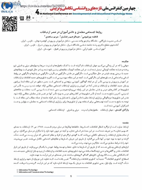 روابط اجتماعی معلمان و دانش آموزان در عصر ارتباطات