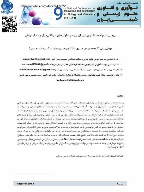 بررسی تغییرات ساختاری دی ان ای در سلولهای سرطانی قبل و بعد از درمان