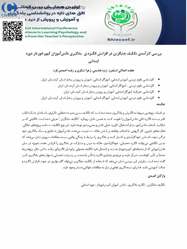 بررسی کارآمدی تکالیف جایگزین در افزایش انگیزه ی یادگیری دانش آموزان کم برخوردار دوره ابتدایی