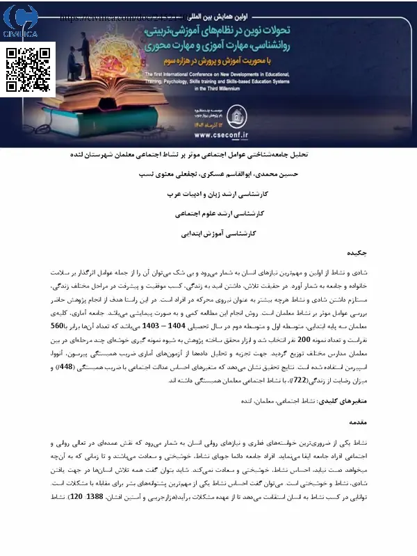 تحلیل جامعه شناختی عوامل اجتماعی موثر بر نشاط اجتماعی معلمان شهرستان لنده