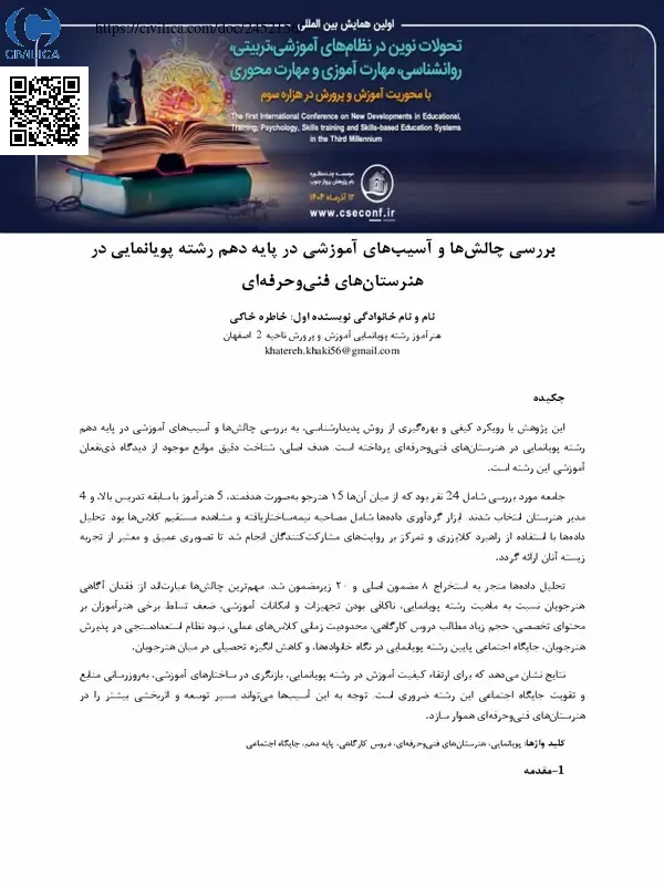 بررسی چالش ها و آسیب های آموزشی در پایه دهم رشته پویانمایی در هنرستان های فنی وحرفه ای