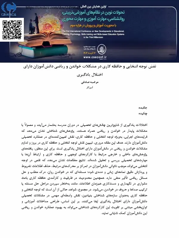 نقش توجه انتخابی و حافظه کاری در مشکلات خواندن و ریاضی دانش آموزان دارای اختلال یادگیری