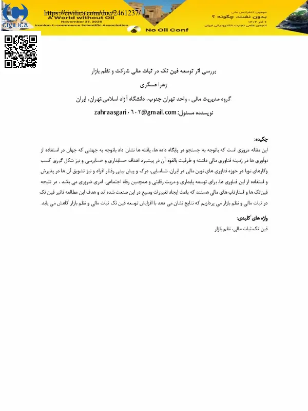 بررسی اثر توسعه فین تک در ثبات مالی شرکت و نظم بازار
