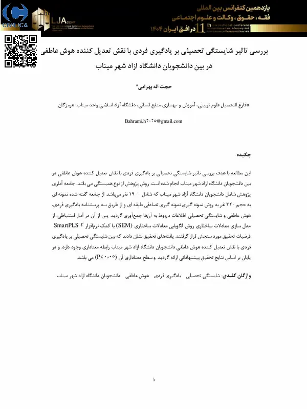 بررسی تاثیر شایستگی تحصیلی بر یادگیری فردی با نقش تعدیل کننده هوش عاطفی در بین دانشجویان دانشگاه آزاد شهر میناب