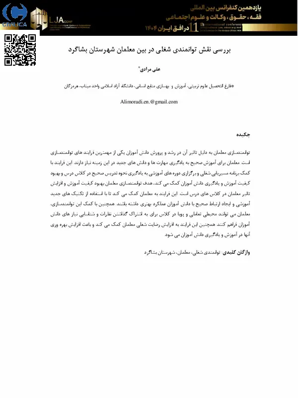 بررسی نقش توانمندی شغلی در بین معلمان شهرستان بشاگرد