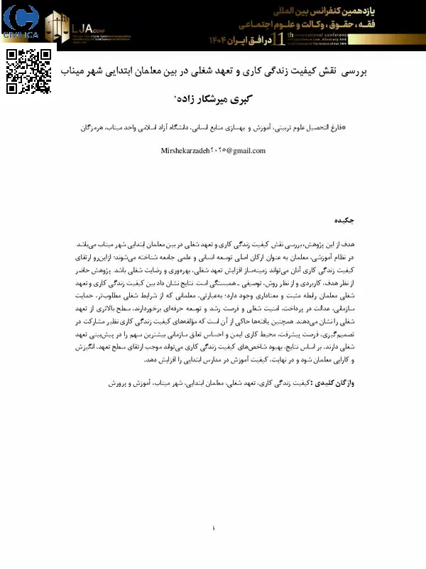 بررسی نقش کیفیت زندگی کاری و تعهد شغلی در بین معلمان ابتدایی شهر میناب