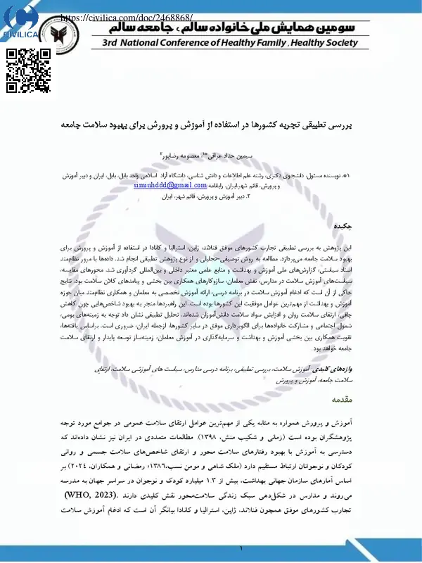 بررسی تطبیقی تجربه کشورها در استفاده از آموزش و پرورش برای بهبود سلامت جامعه