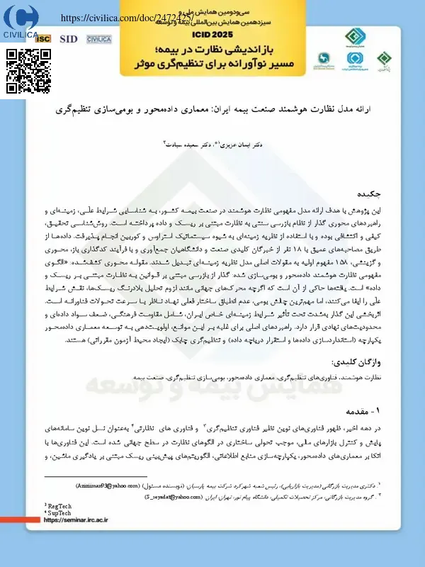 ارائه مدل نظارت هوشمند صنعت بیمه ایران: معماری داده محور و بومی سازی تنظیم گری