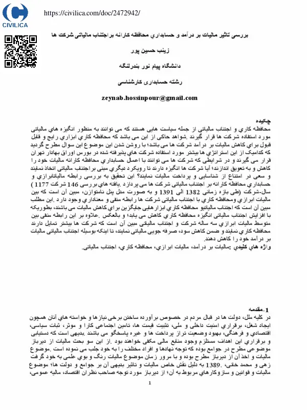 بررسی تاثیر مالیات بر درآمد و حسابداری محافظه کارانه براجتناب مالیاتی شرکت ها