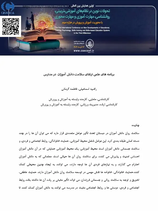 برنامه های علمی ارتقای سلامت دانش آموزان در مدارس