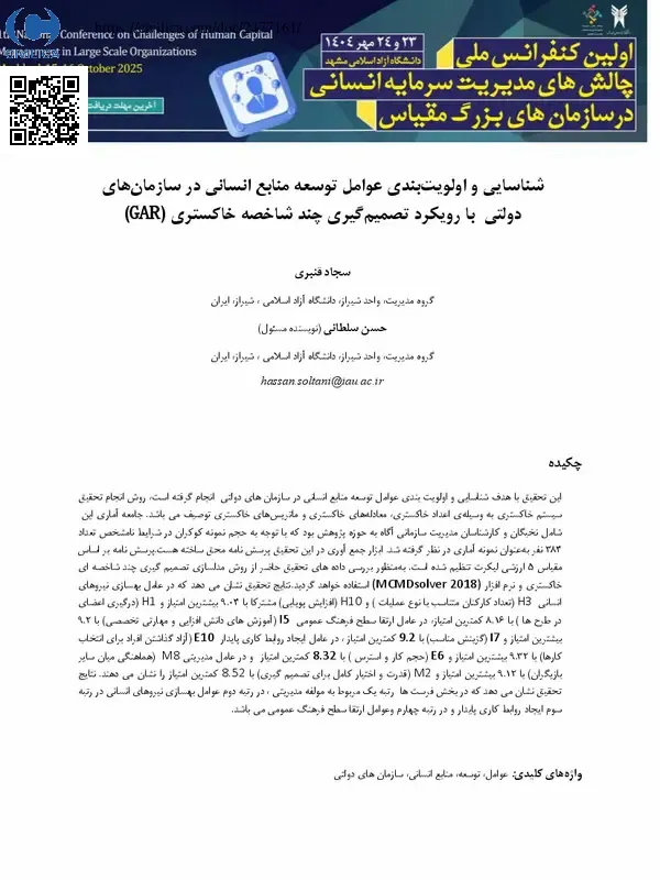 شناسایی و اولویت بندی عوامل توسعه منابع انسانی در سازمان های دولتی با رویکرد تصمیم گیری چند شاخصه خاکستری (GAR)