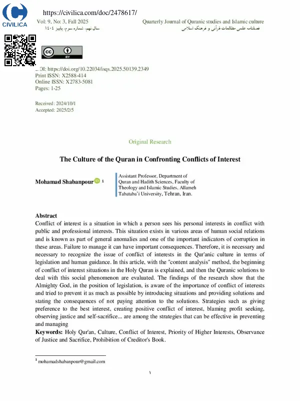 فرهنک قرآن در مواجهه با تعارض منافع