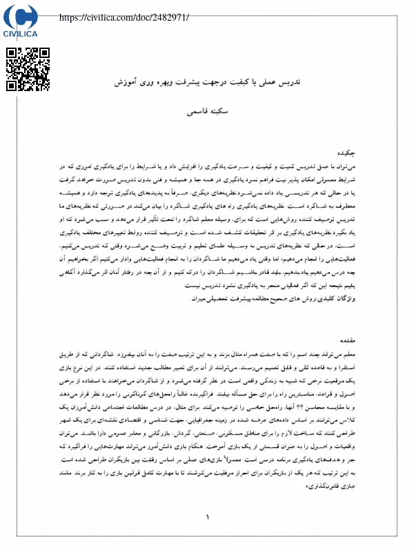 تدریس عملی با کیفیت درجهت پیشرفت وبهره وری آموزش