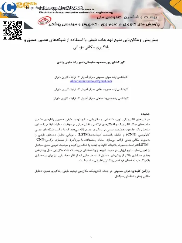 هوش مصنوعی در جنگ الکترونیک ، مکان یابی تهدید طیفی ، یادگیری عمیق ، تحلیل مکانی-زمانی ، شناسایی سیگنال