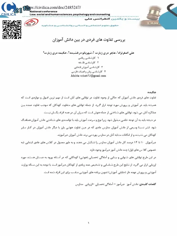 بررسی تفاوت های فردی در بین دانش آموزان