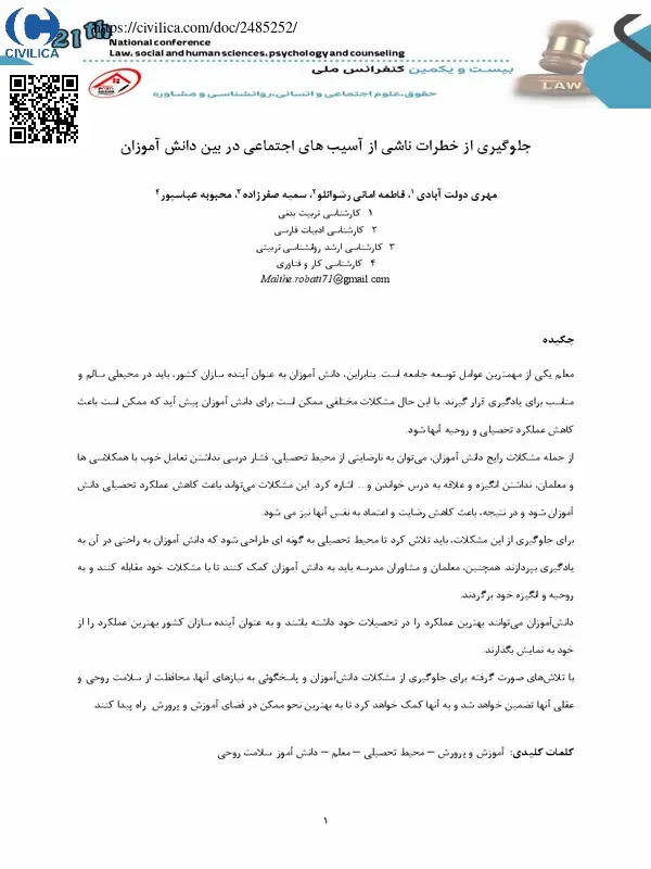 جلوگیری از خطرات ناشی از آسیب های اجتماعی در بین دانش آموزان