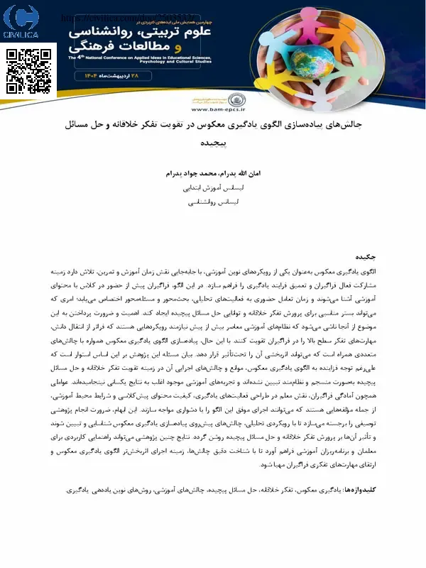 الگوی یادگیری معکوس به عنوان یکی از رویکردهای نوین آموزشی، با جابه جایی نقش زمان آموزش و تمرین، تلاش دارد زمینه مشارکت فعال فراگیران و تعمیق فرایند یادگیری را فراهم سازد. در این الگو، فراگیران پیش از حضور در کلاس با محتوای آموزشی آشنا می شوند و زمان تعامل حضوری به فعالیت های تحلیلی، بحث محور و مسئله محور اختصاص می یابد؛ امری که می تواند بستر مناسبی برای پرورش تفکر خلاقانه و توانایی حل مسائل پیچیده ایجاد کند. اهمیت و ضرورت پرداختن به این موضوع از آنجا ناشی می شود که نظام های آموزشی معاصر بیش از پیش نیازمند رویکردهایی هستند که فراتر از انتقال دانش، مهارت های تفکر سطح بالا را در فراگیران تقویت کنند. با این حال، پیاده سازی الگوی یادگیری معکوس همواره با چالش های متعددی همراه است که می تواند اثربخشی آن را تحت تاثیر قرار دهد. بیان مسئله این پژوهش بر این اساس استوار است که علی رغم توجه فزاینده به الگوی یادگیری معکوس، موانع و چالش های اجرایی آن در زمینه تقویت تفکر خلاقانه و حل مسائل پیچیده به صورت منسجم و نظام مند تبیین نشده اند و تجربه های آموزشی موجود اغلب به نتایج یکسانی نینجامیده اند. عواملی همچون آمادگی فراگیران، نقش معلم در طراحی فعالیت های یادگیری، کیفیت محتوای پیش کلاسی و شرایط محیط آموزشی، از جمله مولفه هایی هستند که می توانند اجرای موفق این الگو را با دشواری مواجه سازند. این ابهام، ضرورت انجام پژوهشی توصیفی را برجسته می سازد تا با رویکردی تحلیلی، چالش های پیش روی پیاده سازی یادگیری معکوس شناسایی و تبیین شوند و تاثیر آن ها بر پرورش تفکر خلاقانه و حل مسائل پیچیده روشن گردد. نتایج چنین پژوهشی می تواند راهنمایی کاربردی برای معلمان و برنامه ریزان آموزشی فراهم آورد تا با شناخت دقیق چالش ها، زمینه اجرای اثربخش تر الگوی یادگیری معکوس و ارتقای مهارت های تفکری فراگیران مهیا شود.