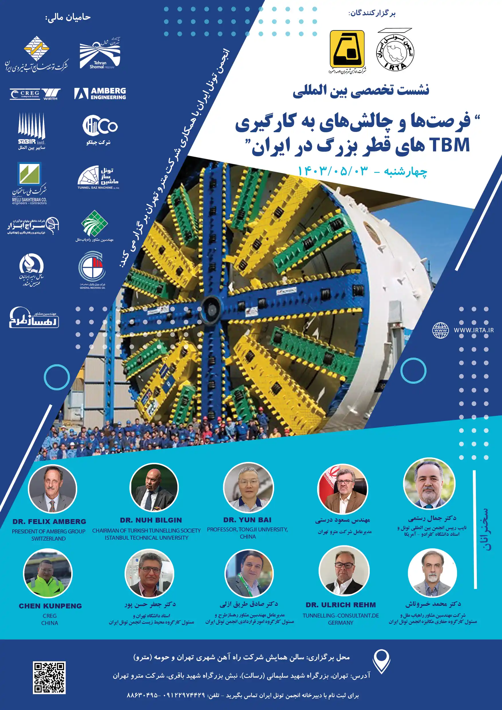 دکتر «جمال رستمی» استاد ایرانی دانشگاه کلرادو امریکا و نایب رئیس انجمن بین المللی تونل، پروفسور «یون بای» استاد دانشگاه تونگ جی چین، دکتر «نوح بیلجین» رئیس انجمن تونل ترکیه و استاد دانشگاه فنی استانبول، دکتر «فلیکس امبرگ» رئیس گروه تونل سازی امبرگ سوئیس، دکتر «محمد خسروتاش»، دکتر «صادق طریق ازلی» و دکتر «جعفر حسن پور» همگی از اعضای انجمن تونل ایران به همراه دکتر «اولریش ریم» رئیس انجمن مشاوران تونل سازی آلمان و «چن کونپنگ» از شرکت CREG چین، نفراتی بودند که به صورت حضوری و یا آنلاین به سخنرانی و ارائه مطلب در همایش مذکور پرداختند.