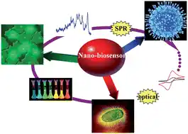 In fact, biosensors are analytical tools that can use the intelligence of biological materials to identify and react with a compound or compounds. The product of this reaction can be a chemical, optical or electrical message. Many biosensors used for biological applications are capable of detecting Ca, etc. and parameters such as temperature, pressure, pH . In addition, they can be used as a biological diagnostic system for substances such as enzymes, antibodies, antigens and microorganisms. In general, biosensors consist of three basic parts: The sensor element that responds to a biological material is biological in nature. This element must be connected to a transducer. The transducers (nanobiosensors) themselves are divided into several categories, which are divided based on the signals received: electrochemical, optical, thermal, piezoelectric, etc. The third part is the processor, which is responsible for displaying the signals converted by the transducer . In addition, the attractive properties of nanomaterials pave the way for the construction of a wide range of electrochemical sensors that improve analytical power .