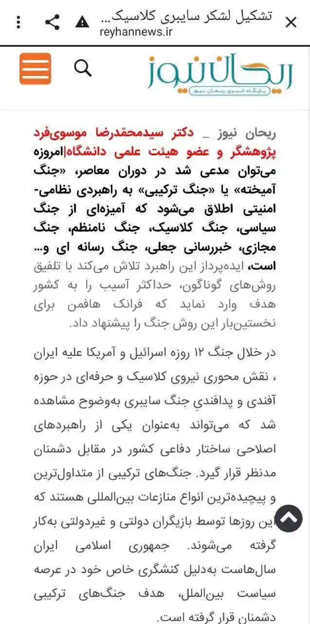 ضرورت تشکیل لشکر سایبری برای جنگ های مدرن در تحلیل دکتر موسوی فرد | ریحان نیوز