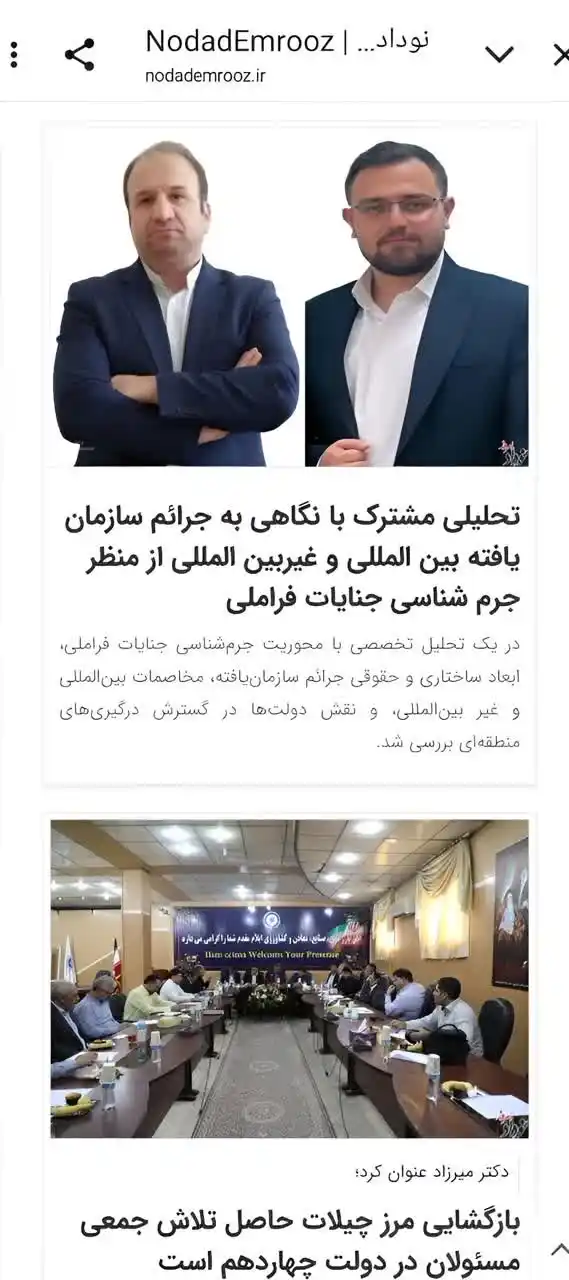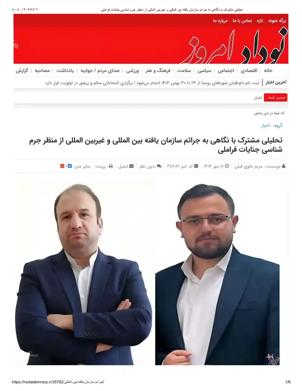 1 یادداشت منتشر شدهنوداد امروز | دکتر سید محمدرضا موسوی فرد ، محمد امین ابوالخیریان در تحلیل مشترک | جرم شناسی جنایات بین المللی و فراملی