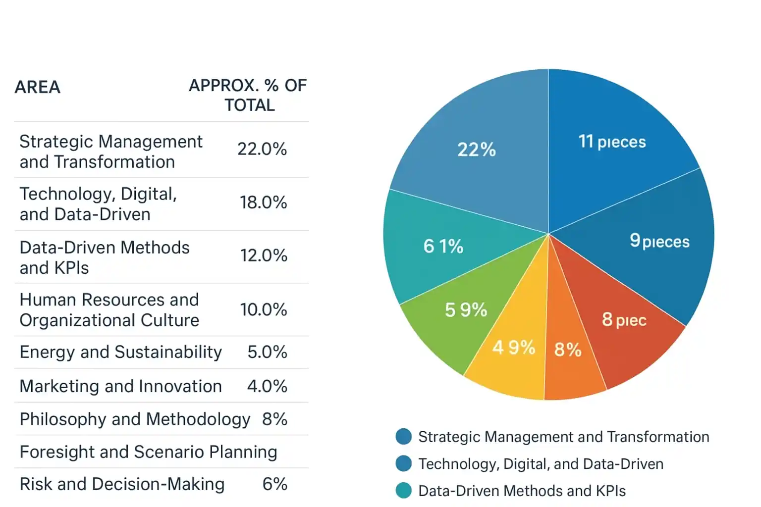 از مدیریت استراتژیک و تحول سازمانی تا مدیریت فناوری داده محور، آینده پژوهی، تعالی و پیشرفت و فلسفه ی علم.