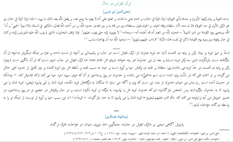 2 - فتوحات مکیه، شیخ محی الدین ابن عربی ، ترجمه ، تعلیق ، محمد خواجوی- تهران : انتشارات مولی، 1383، جلد هفتم، صفحه 5 ، 6 (346/13)