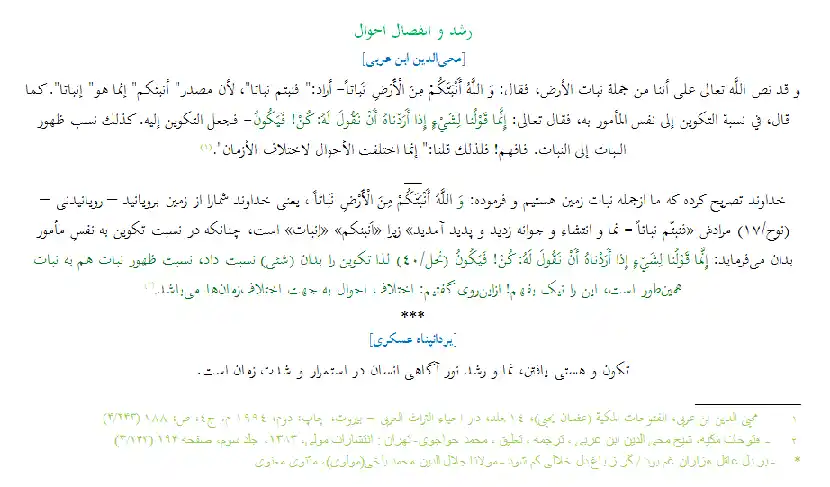 1 – محیی الدین بن عربی، الفتوحات المکیه (عثمان یحیی)، 14جلد، دار احیاء التراث العربی - بیروت، چاپ: دوم، 1994 م. ج4، ص: 188 (243/4)
